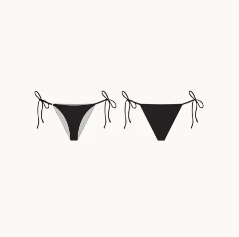 A classic side-tie bikini bottom in a white & blue striped print inspired by the Cycladic palette.