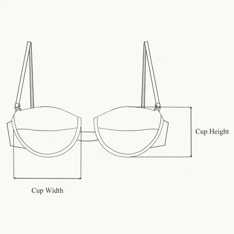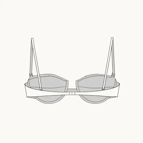 An underwired, balcony bikini top with cups and a back clip fastening with thin, detachable straps.